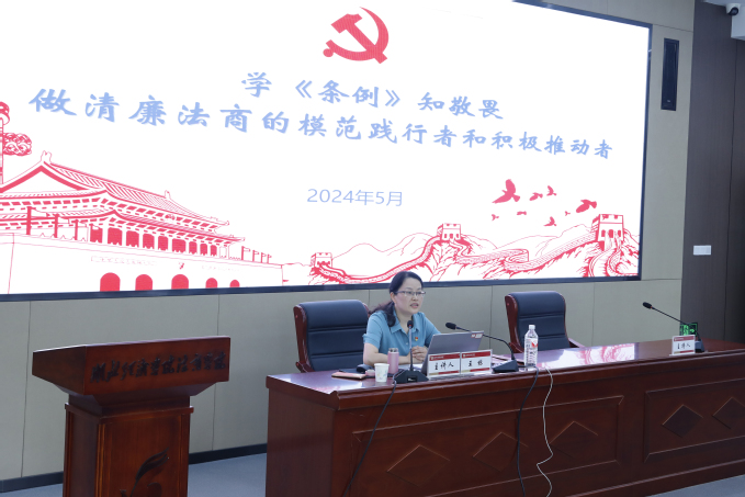 湖北经济学院党委常委、纪委书记王栎受邀作《学<条例>知敬畏,做清廉法商的模范践行者和积极推动者》专题辅导报告。王栎在报告中,首先介绍了当前年轻干部违纪违法问题的主要表现及原因分析;然后对照新修订的《中国共产党纪律处分条例》中关于违反政治纪律、组织纪律、廉洁纪律、群众纪律、工作纪律、生活纪律的处分规定,结合案例逐条进行了讲解。报告中,王栎对我院近年来“清廉法商”创建成效给予了充分的肯定,并从认识到位、措施到位、责任到位三个方面,对我院进一步推进“清廉法商”建设给出了具体的指导意见。