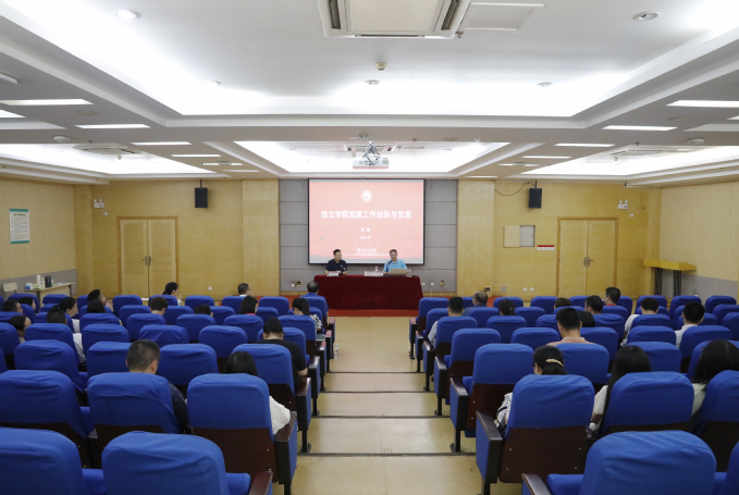 汪达在报告中,首先从独立学院的应运而生、规范设置、急剧扩张及转设四个阶段系统介绍了我国独立学院的发展历史,剖析了独立学院快速发展中的利弊及存在的差距。然后,就高校党建工作面临的挑战、加强党建工作创新的重要性、党建工作创新对于高校发展的推动作用进行了详细阐述,在此基础上,介绍了独立学院党建工作6大功能,剖析了独立学院党建工作存在的4个方面难点,并从5个方面对我院党建工作的进一步优化提出了明确的路径建议。