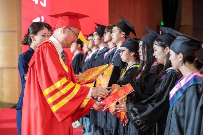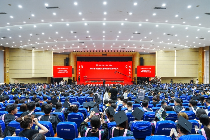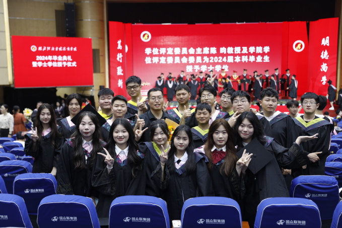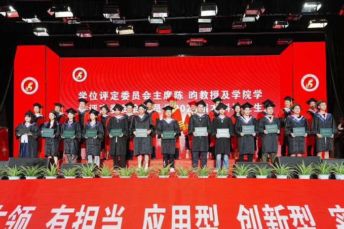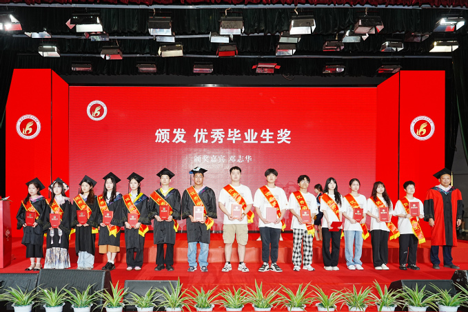 典礼在庄严的国歌声中开始。副院长陈瑶宣读学院2024届优秀毕业生表彰文件,何慧刚为考取研究生的2024届毕业生代表颁奖,院党委书记邓志华为2024届优秀毕业生代表颁奖。