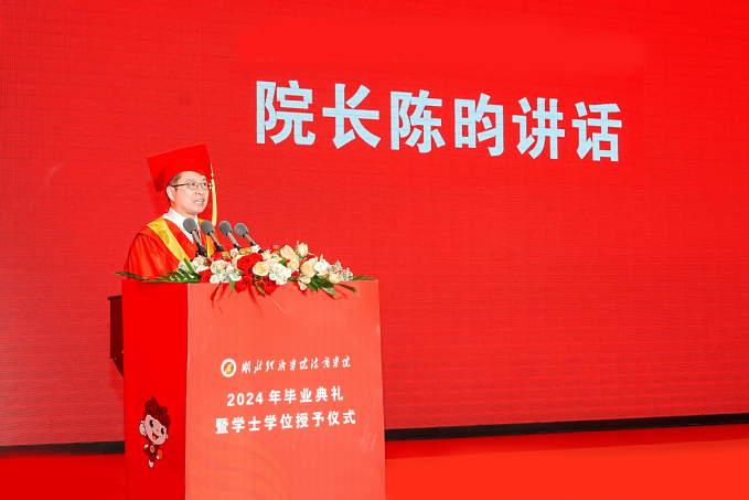 本网讯(通讯员 邢宇)正冠拨穗日,扬帆起航时。6月16日下午,我院在大学生活动中心一号报告厅举行2024年毕业典礼暨学士学位授予仪式。湖北经济学院党委常委、副校长、法商学院董事长何慧刚教授,开云·体育-中国一站式服务平台全体院领导,学院学位评定委员会全体委员出席,各系、各职能部门主要负责人,2024届毕业班全体辅导员、班主任,教师代表、家长代表、校友代表和2024届毕业生共同参加。院党委副书记、副院长杨宏斌主持典礼。