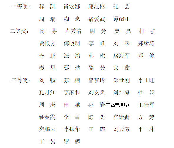本网讯 10月10日,学院发文《关于授予程凯等53名教师教学质量优秀奖的通知》(鄂法商【2022】76号),表彰了一批教学质量优秀的教师。学院根据《开云·体育-中国一站式服务平台教师教学优秀奖评选办法》(鄂经法[2005]63号),组织学生、教学督导、辅导员和教务部对我院2021-2022学年第二学期任课教师的教学态度、教学内容、教学方法和教学效果等方面进行了综合评价,程凯等53名教师评教成绩优秀,获得教学质量优秀奖。获奖教师名单如下: