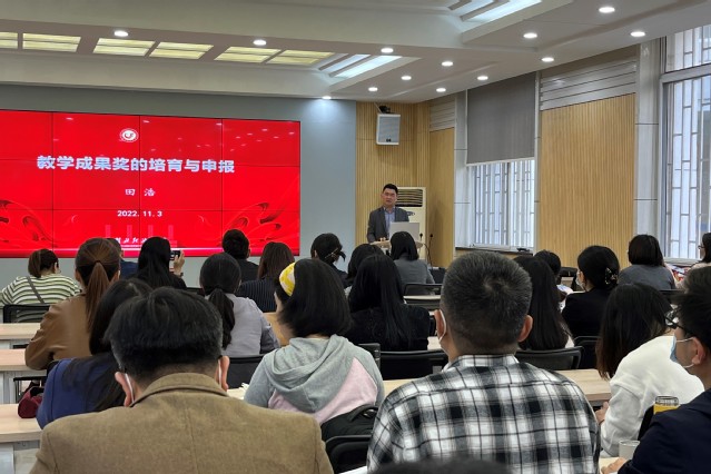 田浩教授作主题为“教学成果奖的培育与申报”的专题讲座