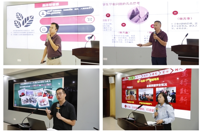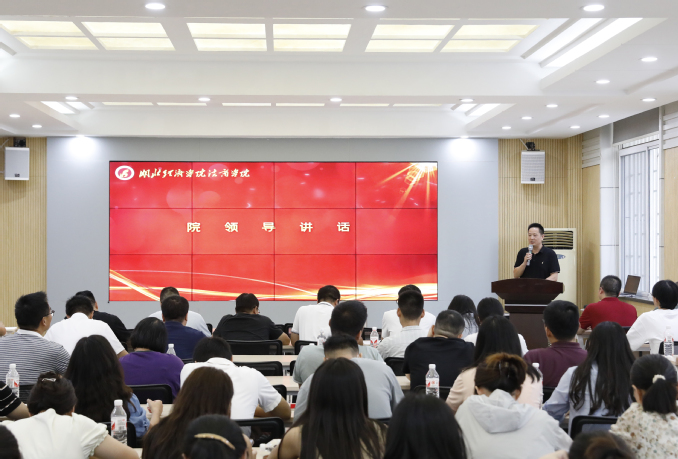 期间,武汉理工大学李珏、武汉工程大学郑冬洁、湖北大学袁勋等3位专家,从辅导员素质能力提升、党建育人、辅导员工作室建设等方面作了主题报告。我院组织宣传部、教务部、学生工作部等单位负责人和相关老师分别围绕党建工作、教务教学、学籍管理、学生日常管理、学生资助、心理健康等方面为新进辅导员、新任班主任作了专题培训。我院辅导员胡远景、王学志、曾意、谭艳4位同志,围绕提升班级凝聚力、学生学业管理、提升学生日常管理服务效能、发挥班团活动在育人中的作用等作了主题交流。学院为新进辅导员举行了入职宣誓仪式。学生工作部、团委负责人布置了开学前后重点工作。