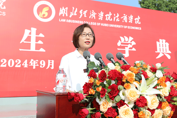 湖北经济学院校长方洁作《年轻的喝彩》主题讲话。她代表全体师生员工向2024级新生表示祝贺与欢迎,并指出,三年日夜苦读,经历最热烈的岁月和最凛冽的挑战,战胜了焦虑,扛过了疲惫,来到了这里,希望同学们未来在跨出毕业之门时,还能记得今天的热情,始终激荡年轻的能量,发出属于自己的青春的喝彩。方洁希望同学们为自己喝彩,为学校喝彩,为时代喝彩。
