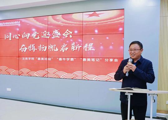 本网讯(通讯员 郝甜 肖博)10月14日晚,我院 “同心向党迎盛会 奋楫扬帆启新程”主题分享会成功举办,党委书记张治武、院长陈昀教授、党委副书记、副院长杨宏斌出席,各系党总支书记,组织宣传部、教务部、学生工作部、团委负责人,院学生会主席团成员,获奖学生代表和新生班级学习委员参加。