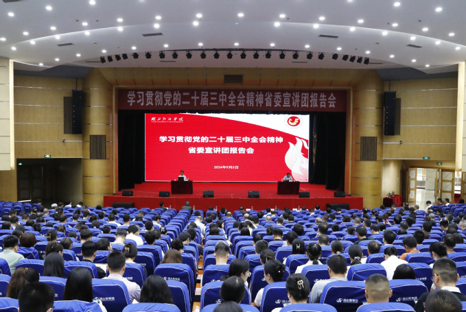 本网讯 9月5日,学习贯彻党的二十届三中全会精神省委宣讲团报告会在学校学术会议中心一号报告厅举行。我院全体院领导、全体中层干部、党支部书记、学校年轻干部理想信念强化研修班学员参加会议。湖北经济学院党委书记高义勇主持报告会。