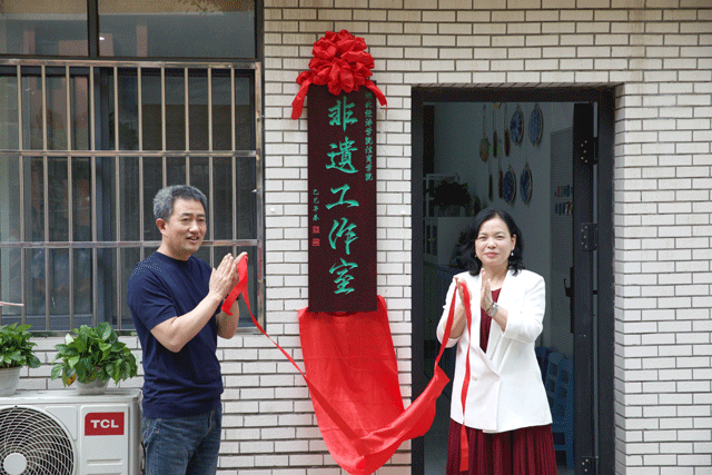 院长颜莉教授(右)、副院长龚振中教授共同为“非遗工作室”揭牌