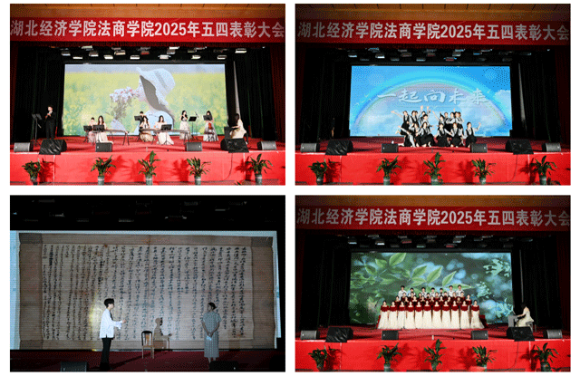 本网讯(通讯员 赵云飞)为继承和发扬五四精神,激励各级团组织、广大团员青年锐意进取、创先争优,4月29日晚,学院2025年五四表彰大会在大学生活动中心一号报告厅举行。湖北经济学院党委常委、副校长,法商学院董事长何慧刚,学院全体院领导、党委委员出席,各职能部门负责人,各系党总支书记、副书记,各系团总支书记、副书记,全体辅导员(班主任)及各系团员青年和学生代表1500余人参加。大会由播音24401吴沁雯、播音23401郭子瑞两位同学主持。
