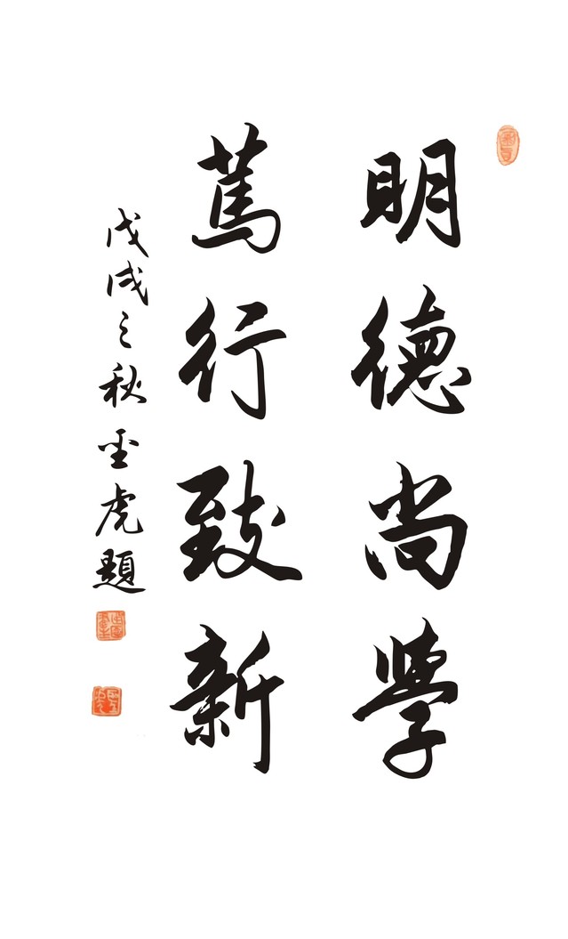 致新:推出新的;创出新的。进行新创造,取得新收获。其内涵为“继承、扬弃、求是、超越”。意在倡导师生扬优良传统,弃陈规陋习,科学发展,与时俱进。致新是笃行的升华,是明德尚学付诸于实践的最高境界。在选择中继承,在继承中创新,在创新中发展,在发展中追求卓越。
