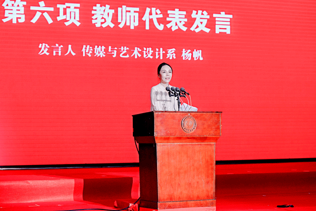 教师代表、传媒与艺术设计系杨帆副教授发言