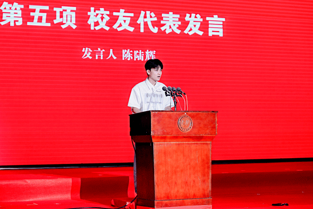 创业校友代表、武汉开讯科技有限责任公司CEO陈陆辉发言,他感恩母校教会了他永远不被“标准答案”束缚,时刻保持“复盘思维”、在思维碰撞中诞生新构想,永远保持勇气、人生没有“妥协”二字。他希望学弟学妹永葆对世界的好奇,让生命成为永不闭合的括号敢于在试错中成长,让挫折成为进阶的阶梯心怀家国天下,让个人理想与时代同频共振。