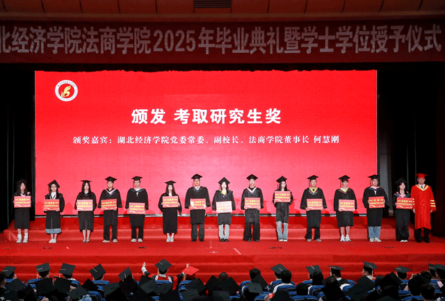 湖北经济学院党委常委、副校长、法商学院董事长何慧刚教授为考取研究生的2025届毕业生代表颁奖