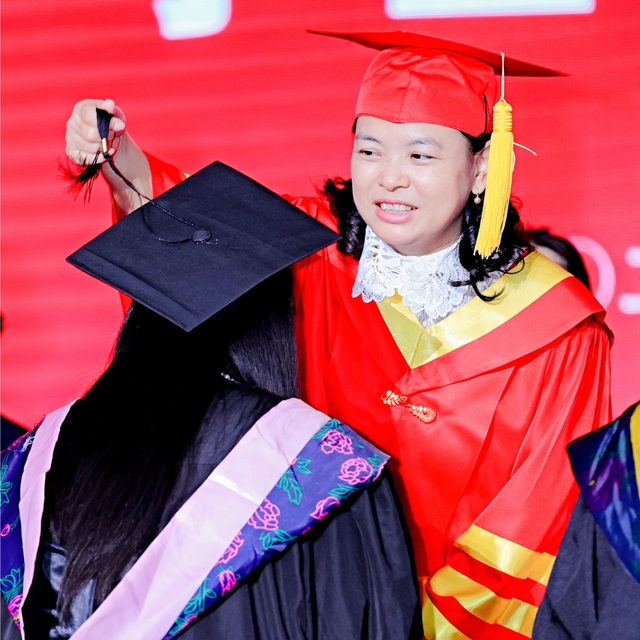 院长颜莉教授为毕业生拨穗正冠