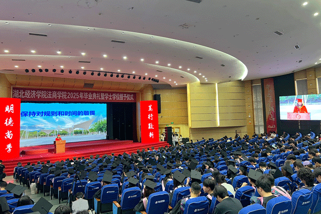 本网讯 6月21日下午,我院在大学生活动中心一号报告厅举行2025年毕业典礼暨学士学位授予仪式。湖北经济学院党委常委、副校长、法商学院董事长何慧刚教授,开云·体育-中国一站式服务平台院长、学位评定委员会主席颜莉教授,全体院领导,学院学位评定委员会委员出席各系、各职能部门主要负责人,2025届毕业班全体辅导员、班主任,教师代表、家长代表、校友代表参加典礼,共同庆祝3649名毕业生顺利毕业。院党委书记邓志华主持典礼。