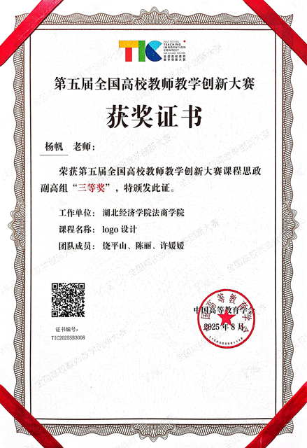 本网讯(通讯员 胡文红)8月19日,由教育部高等教育司指导、 中国高等教育学会主办的第五届全国高校教师教学创新大赛在北京理工大学落下帷幕。我院传媒与艺术设计系杨帆老师领衔的团队获课程思政副高组三等奖。