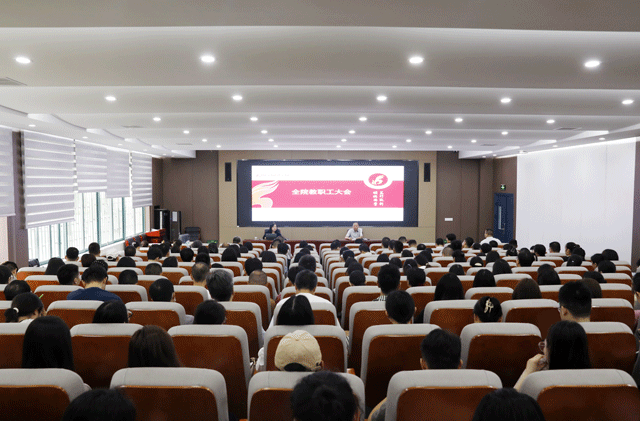 本网讯 为进一步凝聚思想共识、鼓舞师生干劲,明确新学期发展目标和重点工作,9月4日上午,学院在逸夫楼101报告厅召开全体教职工大会。全体院领导出席会议,会议由院党委书记邓志华主持。