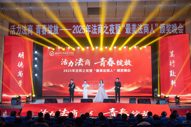 本网讯(通讯员 赵云飞 孙馨)活力法商,青春绽放。11月26日晚,学院在大学生活动中心一号报告厅举行2025年法商之夜暨“最美法商人”颁奖晚会。湖北经济学院党委常委、副校长、法商学院董事长何慧刚教授,学院全体院领导,各职能部门负责人,各系党总支书记、副书记、系副主任,全体辅导员、班主任,获奖学生代表及各班学生代表欢聚一堂,共同见证这场青春盛典。大会由传媒与艺术设计系播音与主持专业韩京琪、吴沁雯、邱鸣响、平焯文四位同学主持。