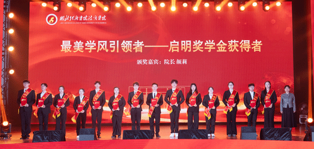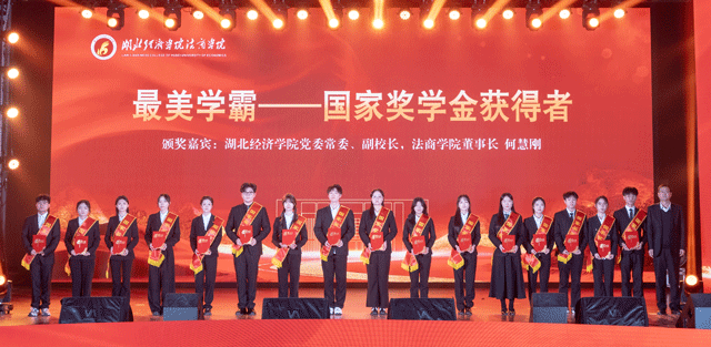 湖北经济学院党委常委、副校长、法商学院董事长何慧刚教授为国家奖学金获得者颁奖