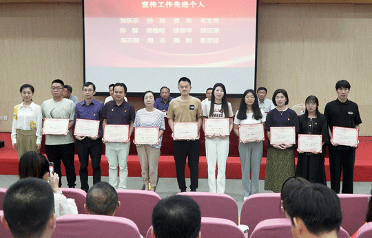 陈瑶宣读学院表彰文件。与会领导分别为学院“两优一先”获奖单位代表、获奖个人和宣传工作先进集体代表、先进个人颁发奖牌和荣誉证书。