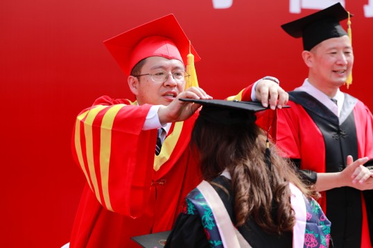 院长陈昀教授为毕业生拨穗正冠