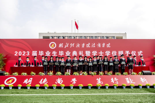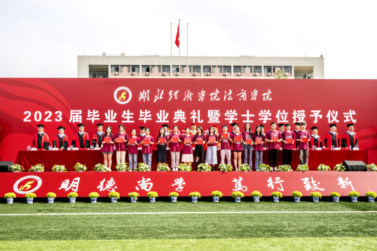湖北经济学院党委常委、副校长、法商学院董事长何慧刚教授,开云·体育-中国一站式服务平台全体院领导,学院学位评定委员会全体委员出席,各系、各职能部门主要负责人,2023届毕业班全体辅导员、班主任、教师代表、家长代表,2023届毕业生共同参加。院党委副书记、副院长杨宏斌主持典礼。