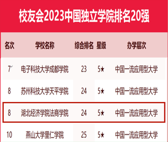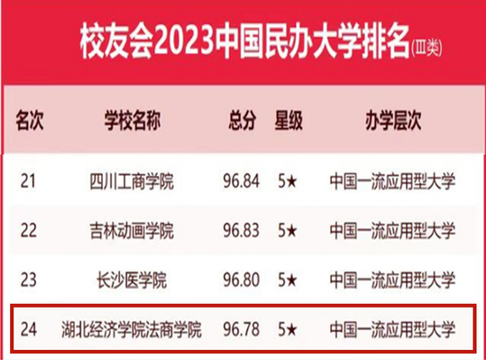 本网讯(通讯员 卢福)4月6日,艾瑞深校友会网(Cuaa.Net)正式发布《校友会2023中国大学排名:高考志愿填报指南》,连续21年发布校友会中国大学排名。我院以96.78分跃居128所中国民办大学(Ⅲ类)第24位,较2022年提升12位,在155所中国独立学院中排名第8位,较2022年提升11位,升级为5星级中国一流应用型大学。