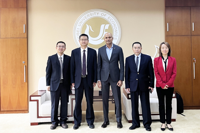 本网讯(通讯员 雷小丹)10月12日上午,美国迈阿密大学赫伯特商学院副院长Harihara Prasad Natarajan一行来我院访问交流。湖北经济学院党委常委、副校长、法商学院董事长何慧刚,法商学院院长陈昀接待来宾,国际交流合作部相关成员陪同会面。