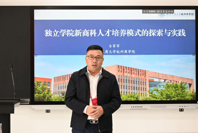 古家军结合浙江工商大学杭州商学院“新商科”建设实践,分享了杭州商学院应用型人才培养模式探索与改革。他表示,推动新商科专业建设,要坚持以“新商科”为导向,不断改造传统商科专业;推进“新商科”设施建设,深化人才培养模式改革,使“新商科”建设日渐体系化;探索实施“专业基础+应用技能”“专业学习+竞赛”应用型人才培养体系的创新,使应用型人才培养特色日益突显。