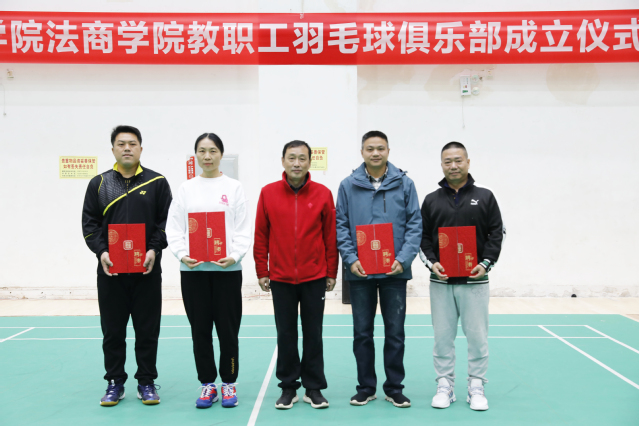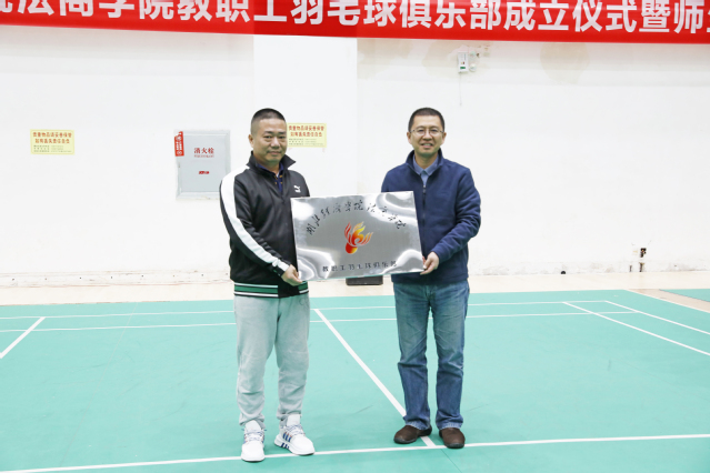 院长陈昀为教职工羽毛球俱乐部授牌,首届会长尹龙接牌