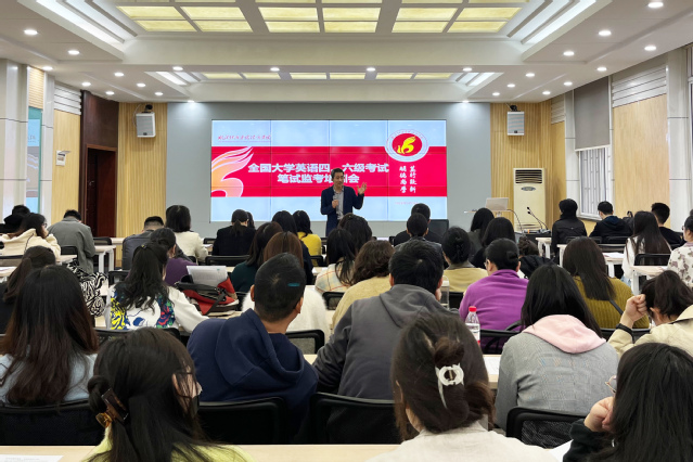 汪韵在讲话中指出,大学英语四六级考试是国家考试,监考工作出不得半点差错,监考教师要认真学习工作文件,按要求处理突发情况。同时,辅导员要加强考生诚信教育,将考生诚信教育落到实处。