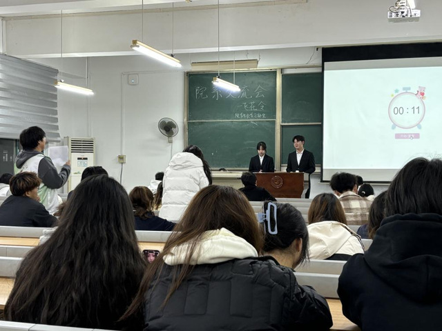(本网讯 李慧灵)11月22日晚,以“青春梦想,院系同行”为主题的院系学习部交流会在教四-401教室顺利开展。教务部教学质量管理办公室漆正武老师出席本次活动,学院院系学习部全体成员共同参加。