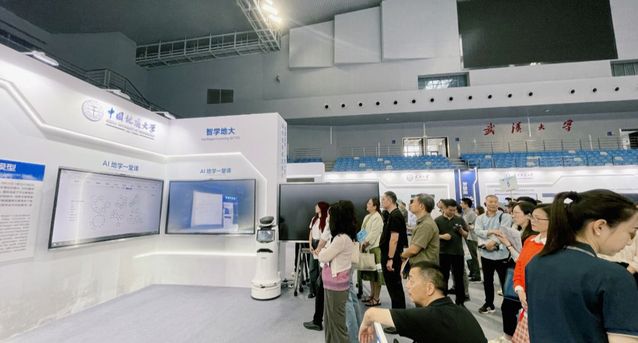 龚振中一行先后参观了湖北高等教育数字化成果展(武汉大学卓尔体育馆)和武汉大学数智教育成果展(武汉大学大学生工程训练与创新实践中心)等区域,深入了解智慧教育新场景、新理念、新基建、新范示,大型场景体验等前沿技术在教育领域的实践成果。在交流会上,与会者们围绕新工科、新文科、新医科、新农科的智慧校园建设、数字化教学资源开发、数据治理等议题展开交流。
