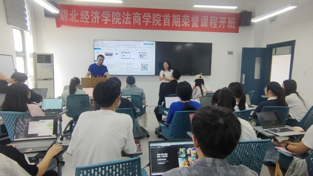 本网讯(通讯员 胡文红)9月1日,学院首期荣誉课程在J4-513顺利结课,院长陈昀教授和教务部副部长胡琼以及教务部相关人员莅临结课现场对荣誉项目班全体学员顺利完成课程学习表示祝贺。
