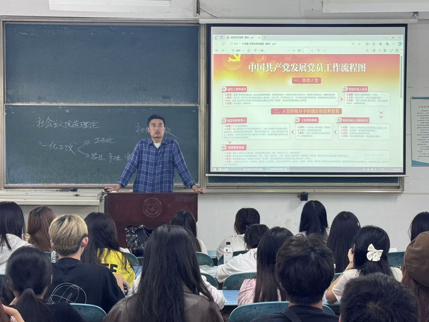 肖老师深入讲述了共青团波澜壮阔的奋斗历程;余老师细致阐述了如何成为一名新时代优秀的共青团员;刘老师着重向大家强调了 “党有号召,团有行动” 的重要理念;张老师全面介绍了中国共产党发展党员的工作流程;曾老师详细讲解了入团的流程和要求;高老师以“把握共青团的改革和发展”为题,深刻讲述了作为一名优秀学生骨干的标准。各位老师通过生动的讲解和丰富的案例,全方位深入地阐述了共青团的历史使命以及新时代青年的责任担当等重要内容,为学员们带来了一场精彩纷呈的知识盛宴,学员们认真听讲、积极互动,展现出了极高的学习热情。培训结束后,我系进行了线下统一考试。