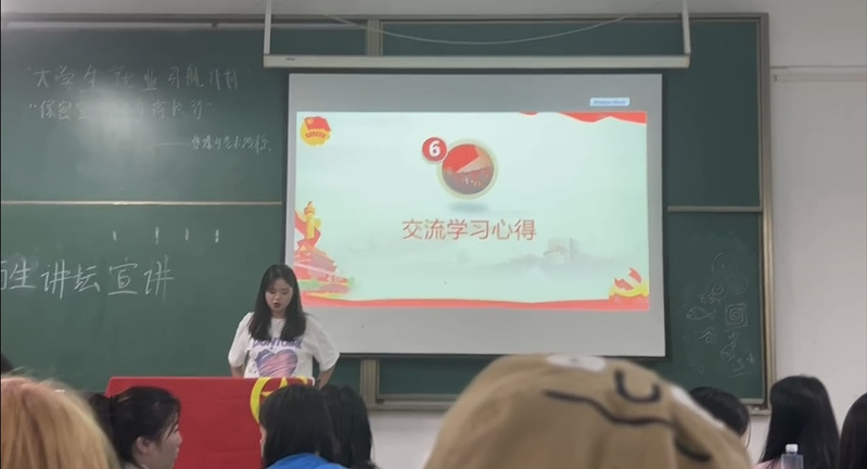 团副邓雅琪通过故事分享、体验交流等形式,提升学生对国情、社情、民情的认知,提高对个人价值实现、职业发展规划等方面的认识。充分发挥同学们的主观能动性,以个人实践为基础进行故事分享,深刻剖析专业的就业方向,从而帮助同学们明确目标,更好地实现个人价值。