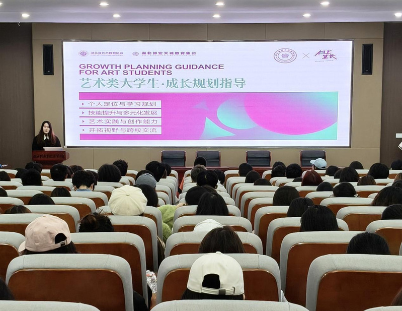 本网讯(通讯员 樊子轩)10月26日19:15,我系在逸夫楼教四101举行了2025级新生“启航新程 筑梦生涯”成长规划指导讲座。本次活动特邀校企合作资深规划师赵兴、夏菁蔓亲临授课,为初入大学校园的艺术生们精准导航成长之路。