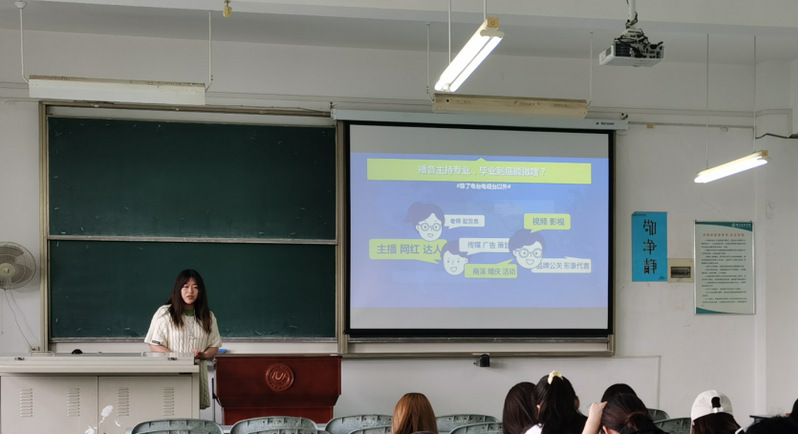 陈经理围绕播音专业毕业生未来职业规划展开。讲座伊始,陈经理以自己的创业公司为例,向同学们提出“一个优秀的专业人员, 必须具备的四项能力——观察能力、语言能力、应变能力、营销能力。”带给了同学们很深的感触。同时,她还向同学们阐述了关于就业、考研、出国与创业四个方面自己独到的见解,并对专业市场选择进行了深入分析与交流。