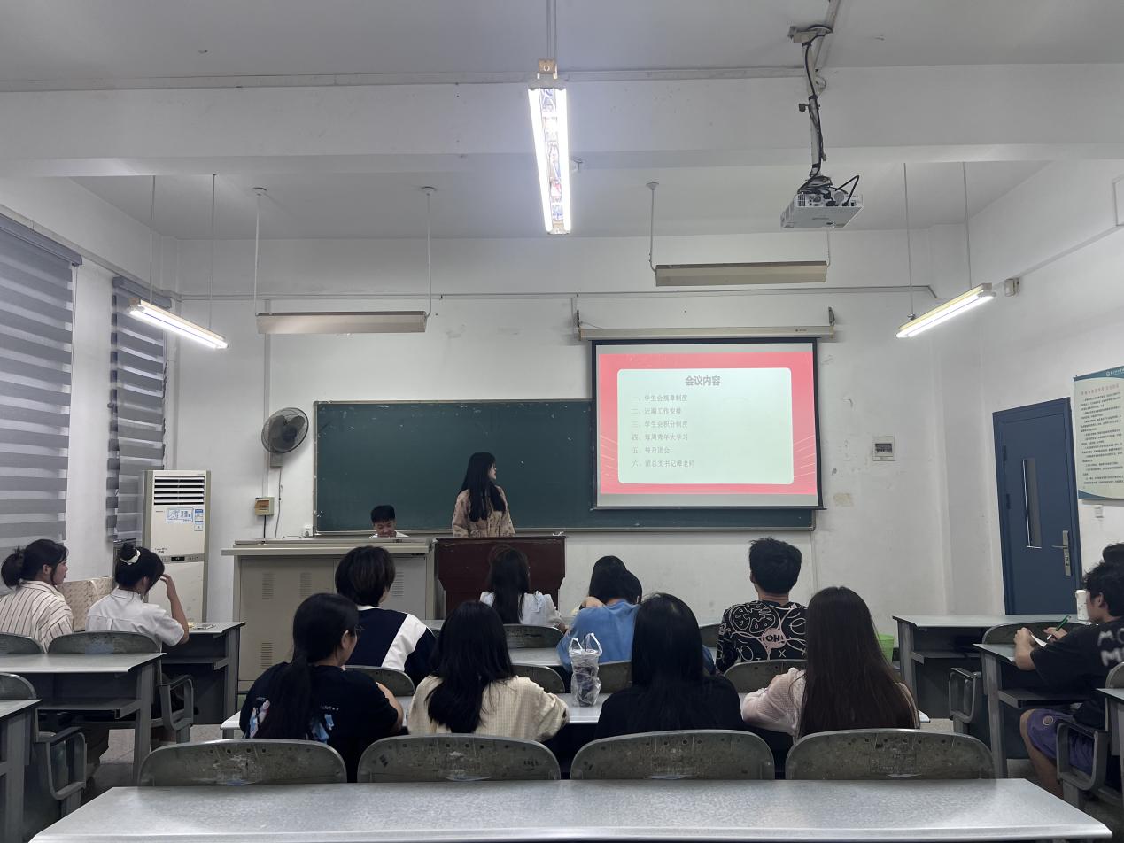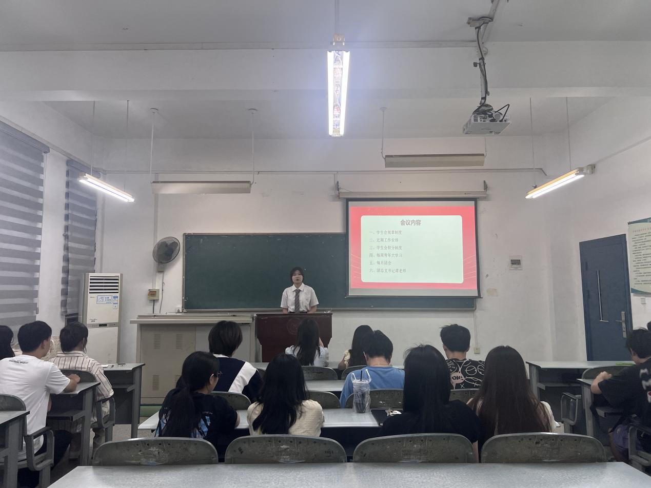 学生会主席团成员林泳希详细介绍了学生会的规章制度,她从“思想端正、定位准确”“模范带头,树立威信”“依规工作,灵活沟通”等方面对学生骨干提出要求;团副程月讲解了每周青年大学习的完成要求以及团会的考勤纪律;主席团成员赵小雪介绍了学生会的积分制度以及工作纪律。