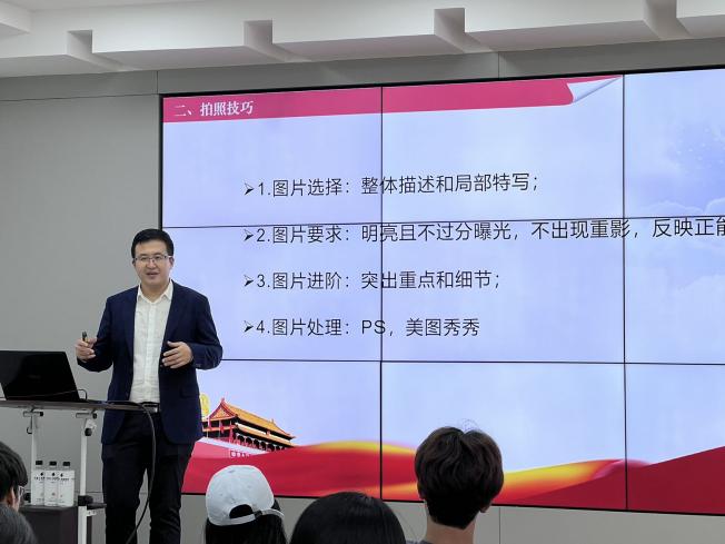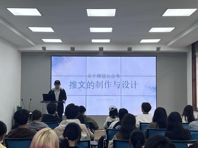 首先,由谭老师向大家演示了如何查找学院官网和系网,教育大家要学会主动去检索信息。然后,邢宇老师从新闻稿的写作技巧、新闻照片的拍摄注意事项、微信公众号的推文规范等展开详细讲解。紧接着由潘昱龙学长结合自身学生会工作经历向同学们讲解了关于微信公众号推文的制作与设计,钟奥学姐讲述了宣传海报的制作和注意事项。